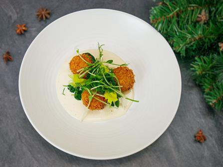Kachní stehno zbavené kůže zalijeme šťávou z výpeku, přidáme nasekanou petrželku a důkladně promícháme. Směs by měla mít tuhou konzistenci, šťávy nesmí být příliš. Z nastrouhaných brambor, polohrubé mouky, vejce a soli připravíme vláčné těsto, ze kterého vyválíme plát tlustý půl centimetru. Z něj pomocí skleničky (průměr cca 8 cm) vykrájíme kolečka. Doprostřed těsta nanášíme polévkovou lžící směs z roztrhaného kachního masa. Kraje těsta spojíme a vytvoříme kuličky. Takto připravené krokety obalíme v trojobalu z mouky, vejce a panko strouhanky. Následně smažíme v oleji na 160 °C dozlatova, případně pečeme v troubě na 180 °C cca 15-20 minut. Smetanu svaříme do konzistence omáčky, přidáme přecezené stroužky uvařeného česneku v oleji, osolíme a pomocí tyčového mixéru připravíme hladkou omáčku. Špenát zprudka opečeme na oleji z česnekových stroužků a lehce dosolíme. Poté kroketu s omáčkou a špenátem můžeme podávat.