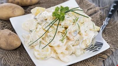 Brambory oloupejte a rozkrájejte na tenká kolečka. Přendejte do pekáče, promíchejte s rozkrájeným pórkem a přelijte smetanou. Dochuťte solí, pepřem a rozmačkaným česnekem. Společně pečte cca 40 minut na 180 stupňů – do změknutí brambor. Podávejte s nasekanými bylinkami.